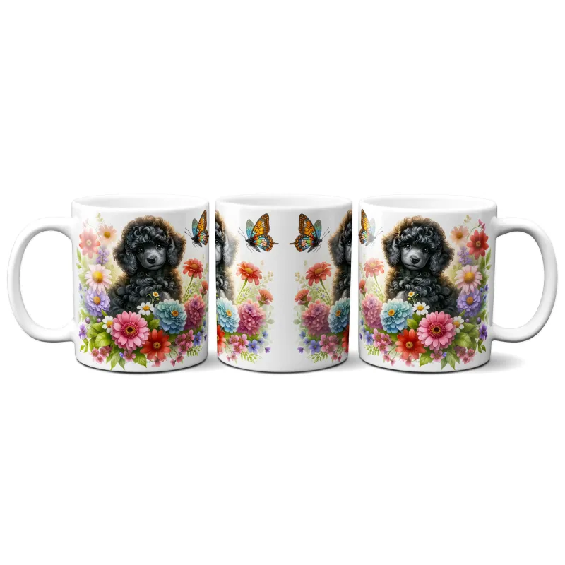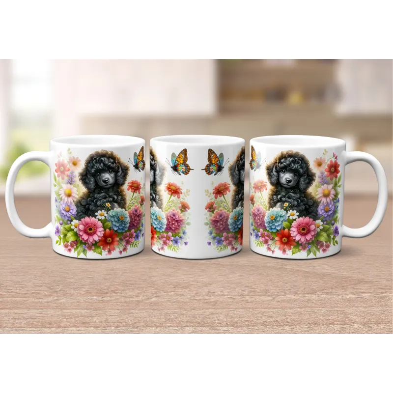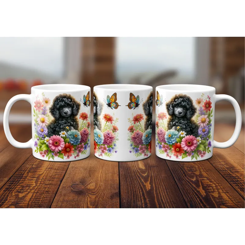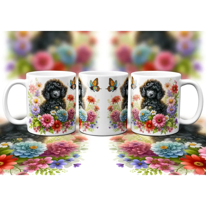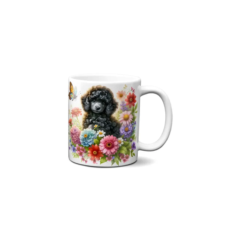 Dárkový hrnek Štěně v kvítí pudl - bílý, s možností vlastního textu