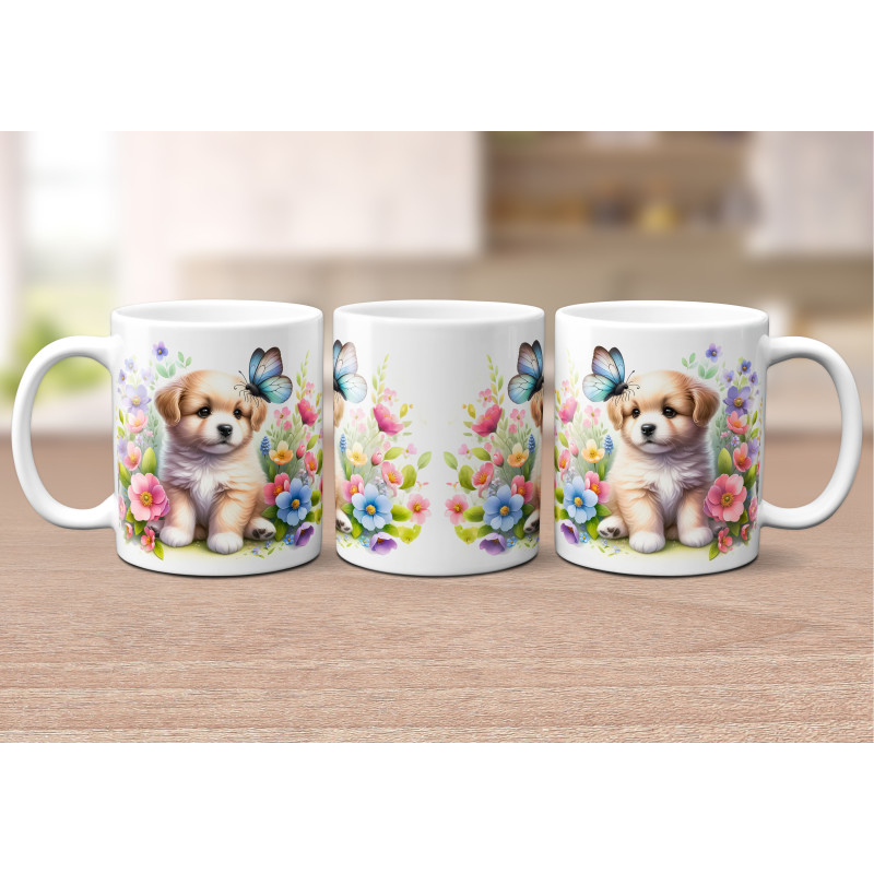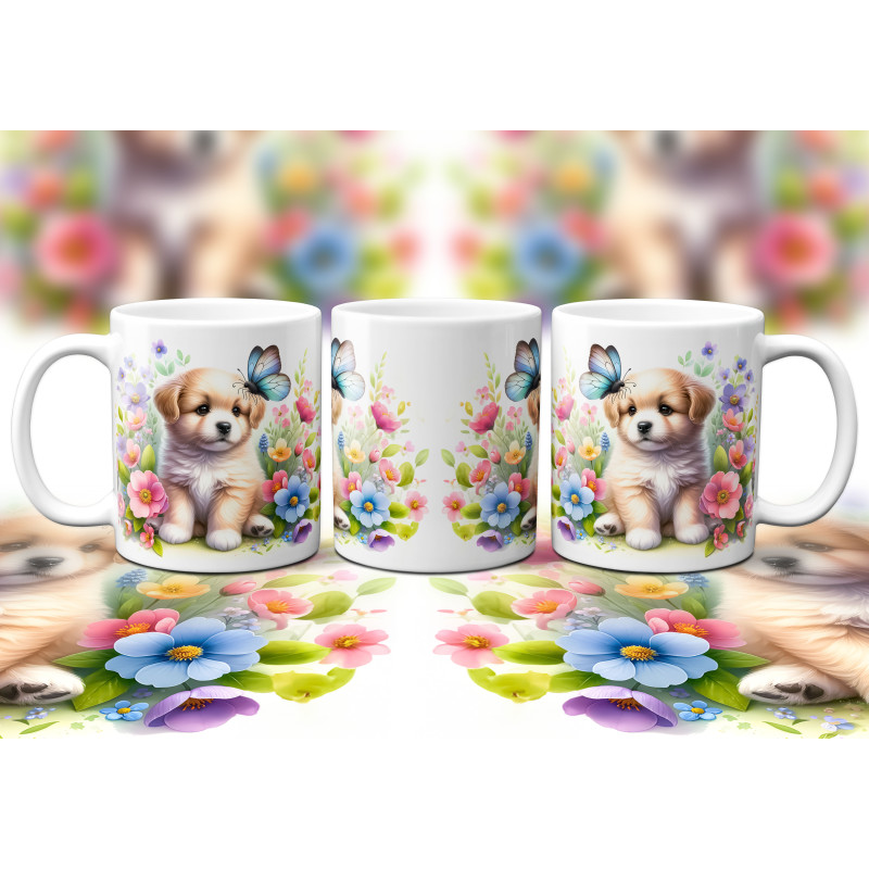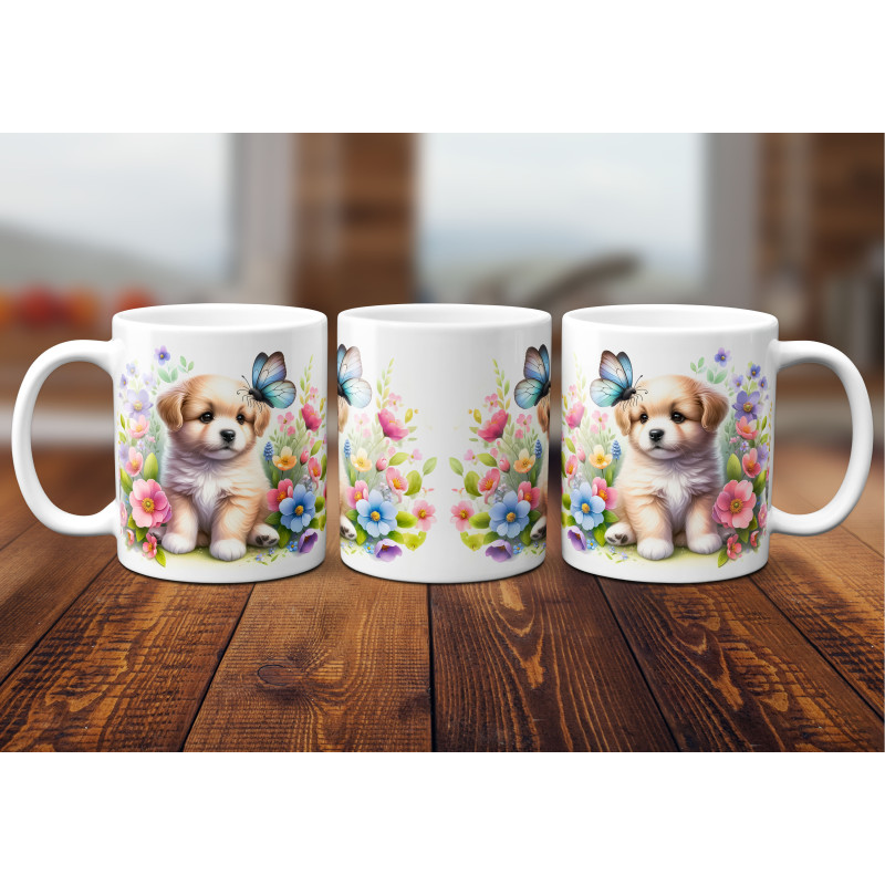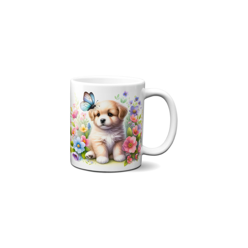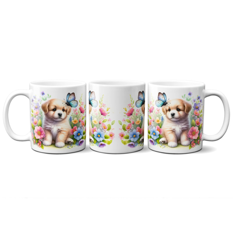 Dárkový hrnek Štěně v kvítí retrívr - bílý, s možností vlastního textu